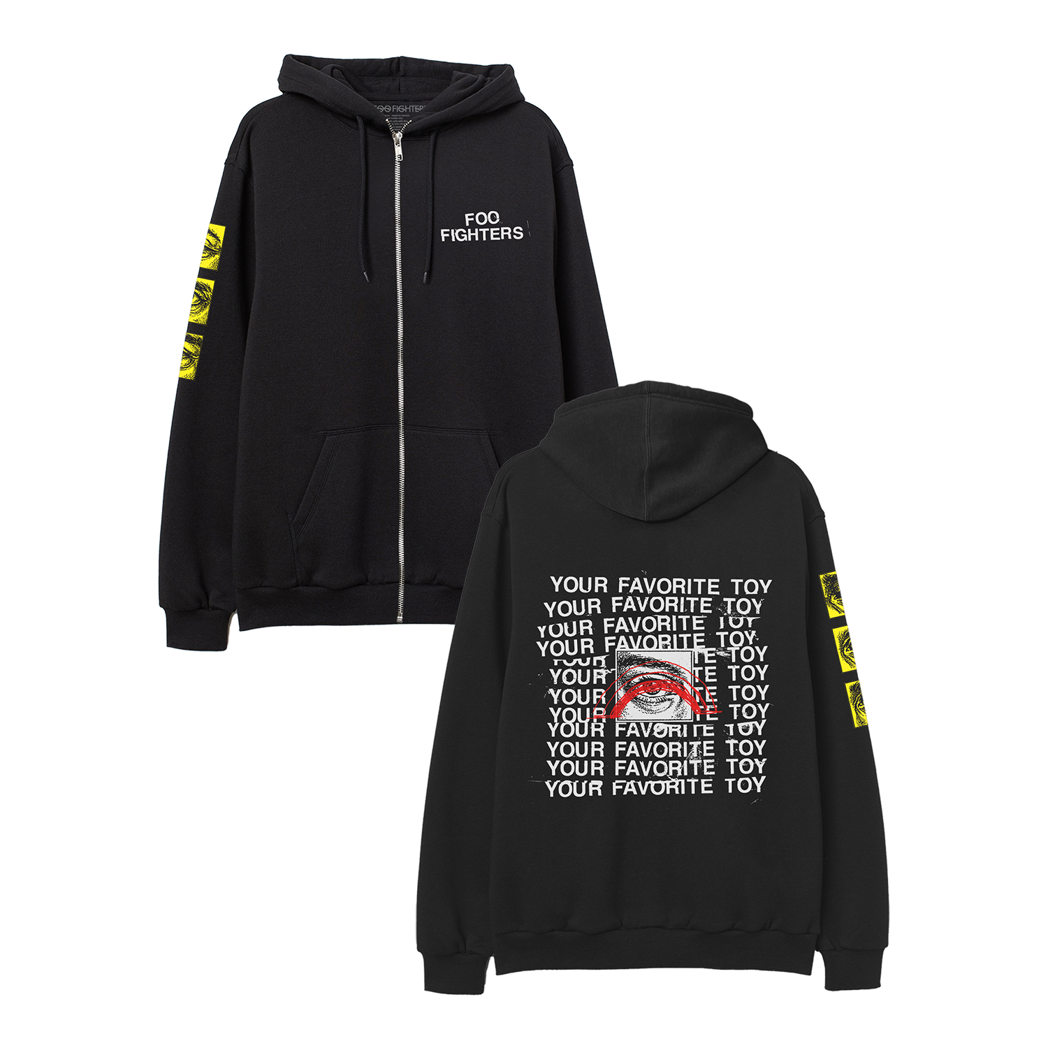 This classic-fit, black, unisex hoodie is crafted from 8 oz. 50/50 cotton/polyester blend features Foo Fighters logo on the front chest and Your Favorite Toy design and artwork on the back